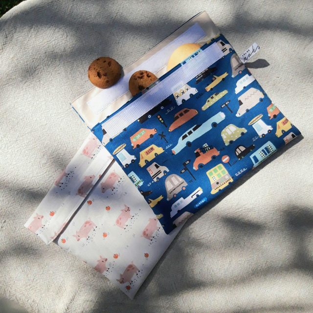 Cette pochette en coton Oekotex doublée d'un tissu imperméable et respirant qui ne contient ni plomb, ni BPA, ni phtalates, ni solvants toxiques vous permet d'emballer et de transporter vos sandwichs, fruits, légumes et gâteaux en mode "zéro déchet".